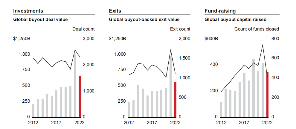 Investments, exits, and fund-raising all declined in 2022 as macro forces took their toll: