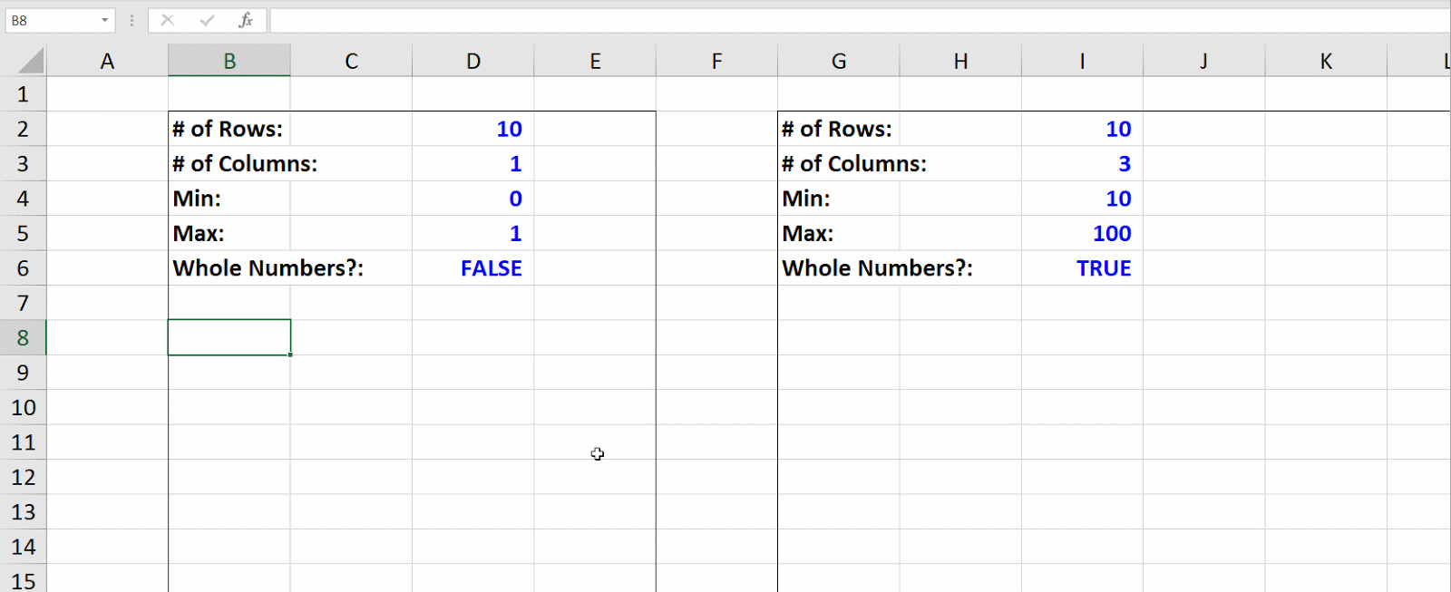 - RANDARRAY: Create a Dynamic Array with a list of random numbers (either integers or decimal numbers)